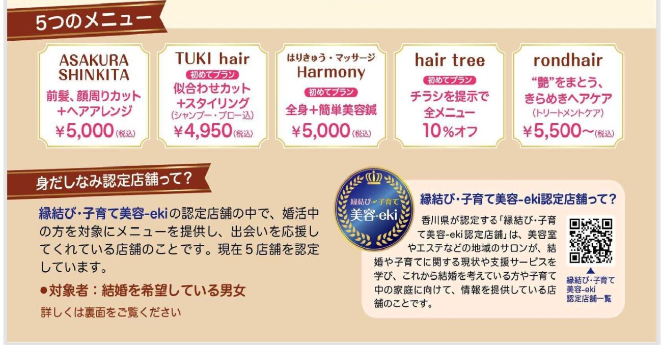 この度、香川県が婚活を応援する美容院・鍼灸院と連携し、婚活を頑張るあなたの出会いを応援します!!